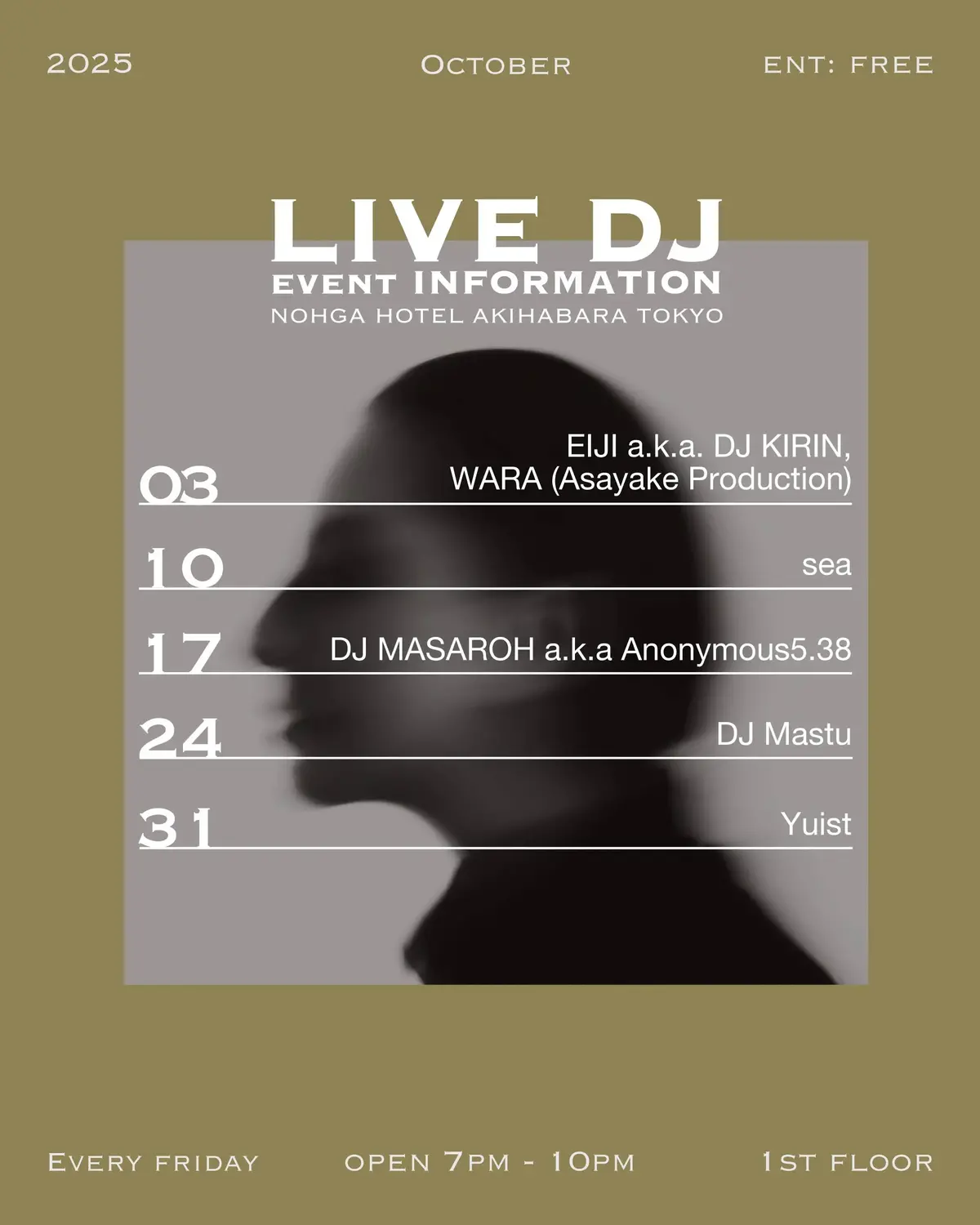 NOHGA HOTEL AKIHABARA TOKYOは、ホテルのテーマである「音楽」を存分にお楽しみいただけるよう、DJがその場で選曲するラウンジミュージックをホテル館内のBGMとしてお届けします。クオリ ティの高い音響設備を備える空間で、くつろぎの時間をお過ごしください。