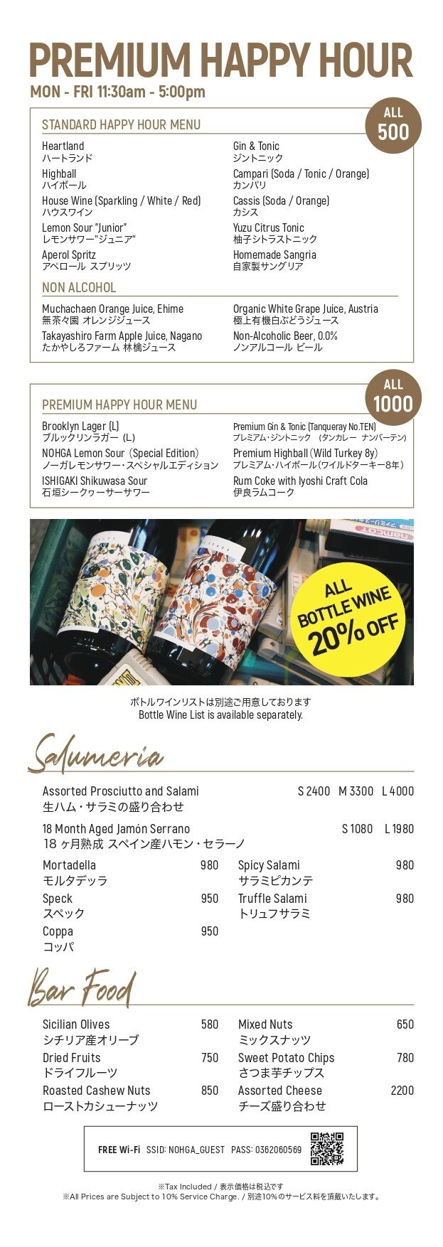 レストラン&バーでは、平日11:30~17:00で、ハッピーアワーを開催しております。