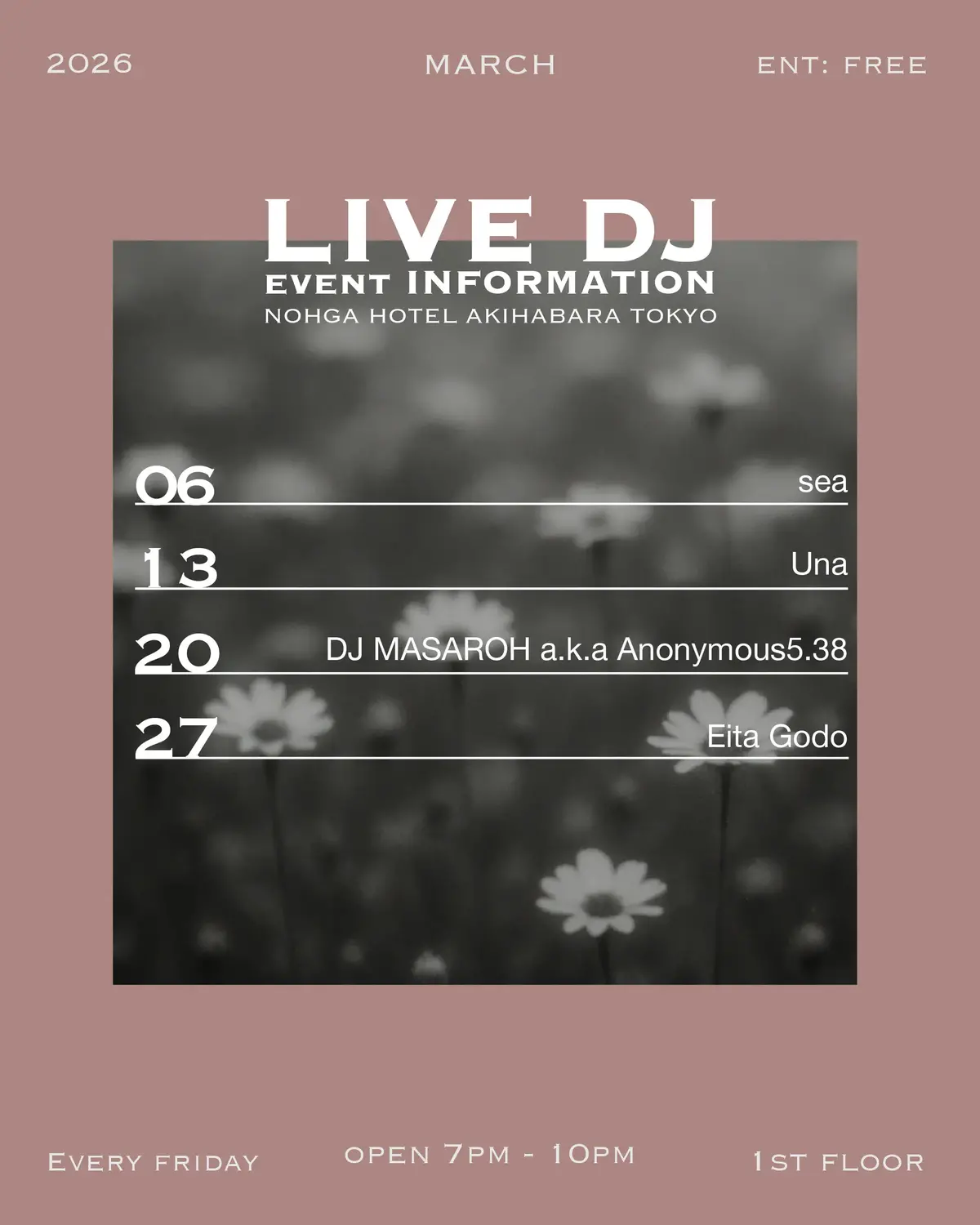 3月 毎週金曜日開催 19:00~22:00