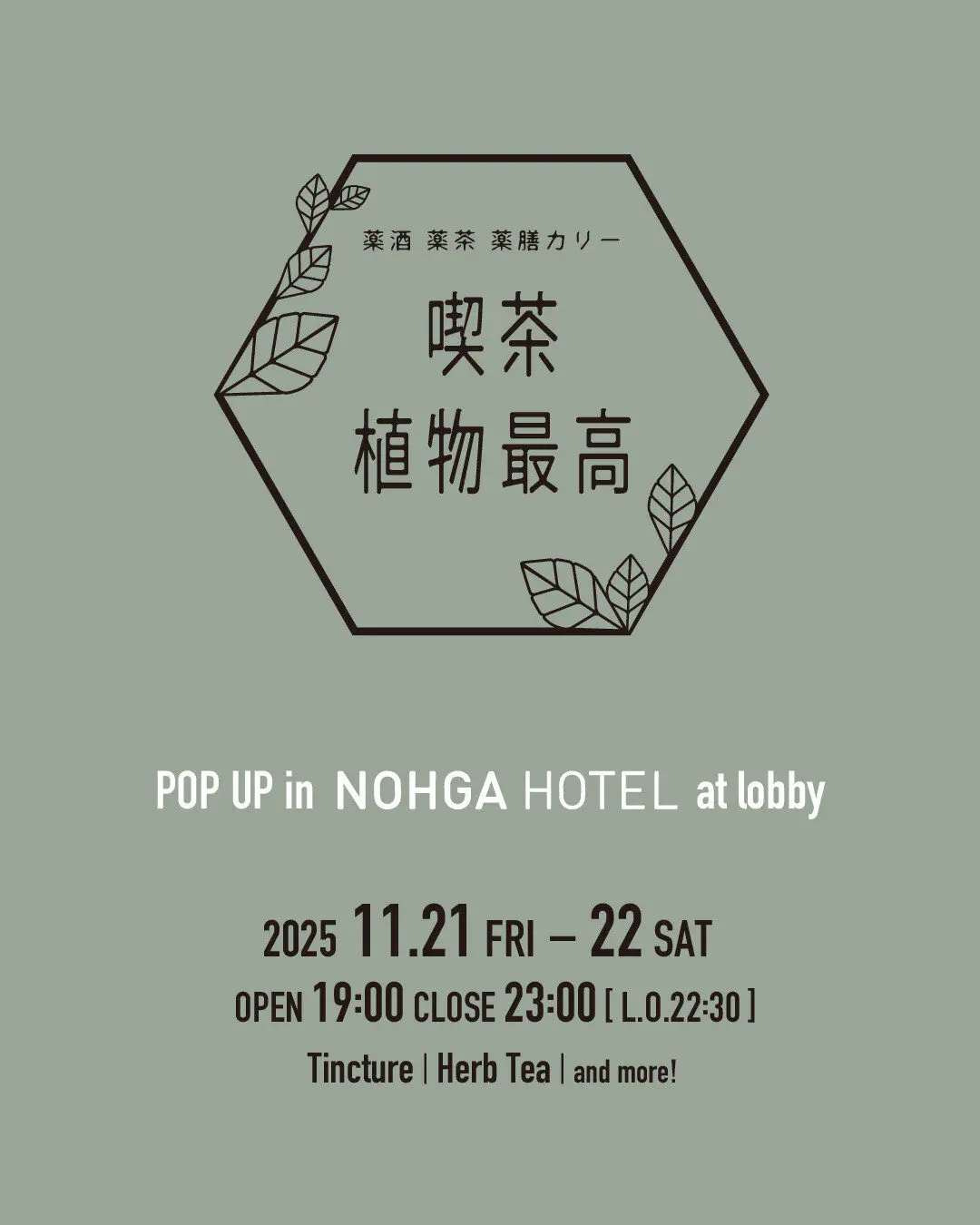 A tincture bar from Harajuku, Tokyo, will be back for a Shokubutsusaiko pop-up bar at the hotel in November!