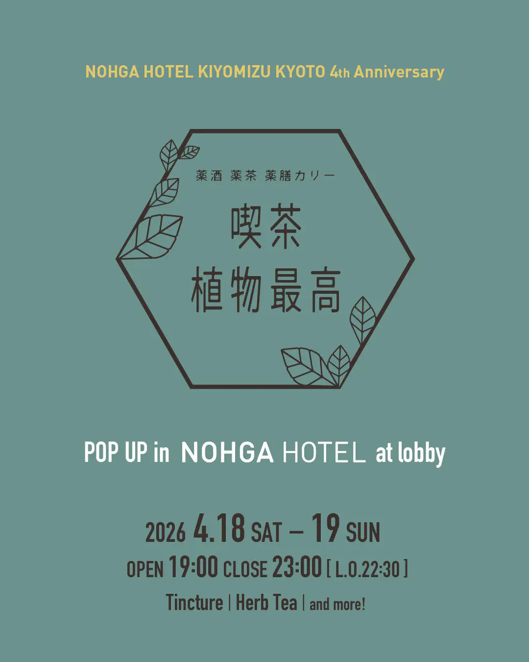 東京・原宿の薬膳バー「植物最高」がノーガホテル清水京都にポップアップで4月もご出店いただきます。