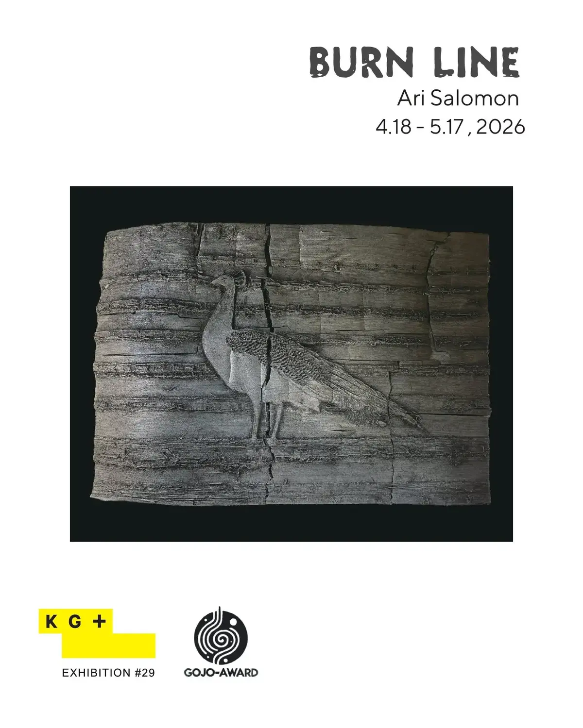 本作Burn Line は、カリフォルニアで激化する山火事を題材に、喪失と再生、そして変容を見つめる作品である。ギャラリーには、無垢材で組まれた骨組みの家屋が佇む。記憶が形を得たかのように存在し、窓の向こうには火災後のロサンゼルスを撮影した写真が広がる。焦げた大地や溶けた金属が、破壊と再生のあわいの美を静かに語る。柱のあいだには「パイロタイプ(Pyrotype)」と自分が呼んでいる木版作品が並ぶ。火災で失われた品々の写真を、CNCルーターで木に刻み、慎重に焼成させ炭化させることで、写真のイメージが燃え殻に幻影のように宿り、フラットな印刷ではなく物体として立ち上がる。本作品は、儚さと強さ、破壊と保存のあいだに立ち、灰の中から芽吹く新たな命と意味を静かに見つめる。