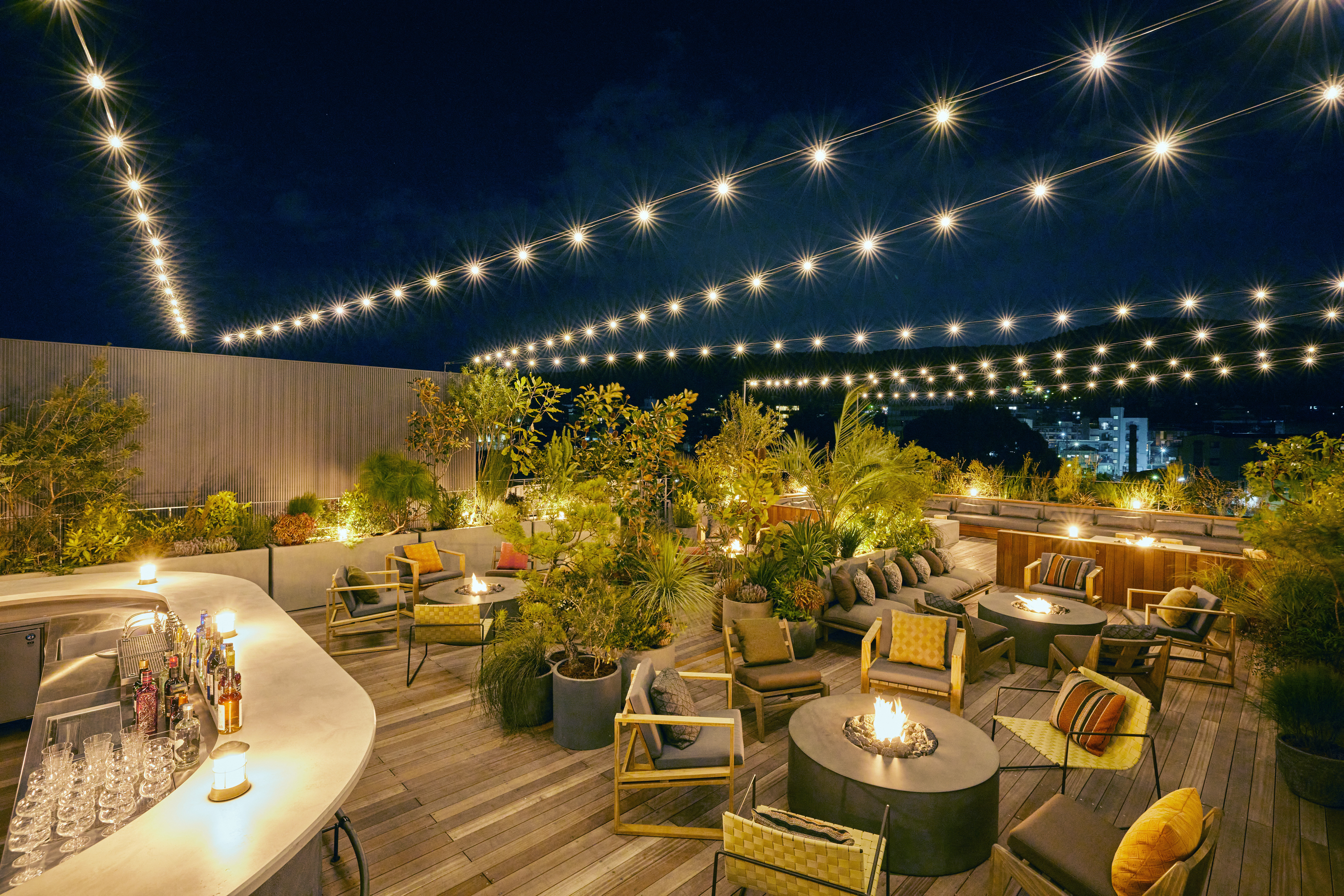 ディナーの後は、 ファイアーピットの灯るルーフトップバー へ。