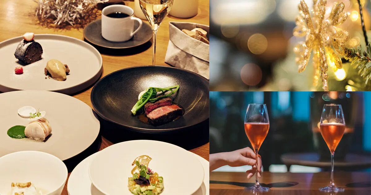 A special multi-course dinner menu featuring six dishes, accompanied by a glass of champagne for toasting the holiday season, served by Bistro NOHGA only for the Christmas period.